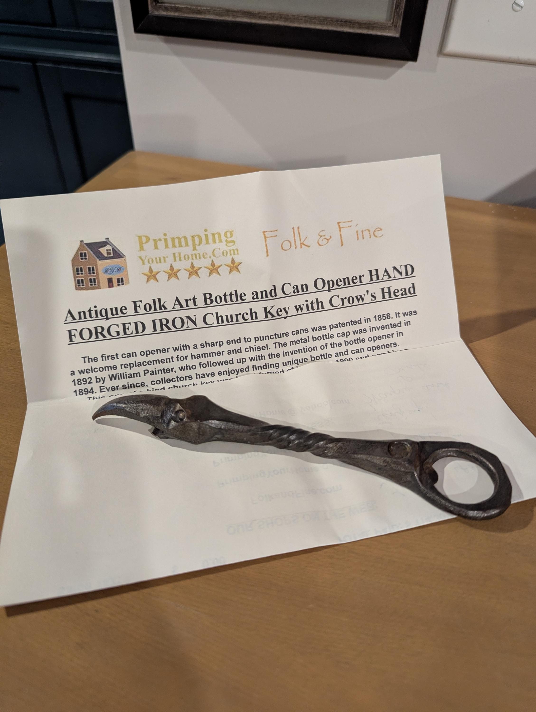 What a great transaction! Love this iron church key bottle opener - just as described, unique piece of history. Communication from the seller was superb. The seller went above and beyond by including super interesting information about the item's history in the package. Could not recommend this seller more!